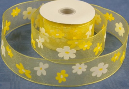 Stuha květy bílo-žluté ( 2m x 40mm ) AKCE 1+1 ZDARMA
