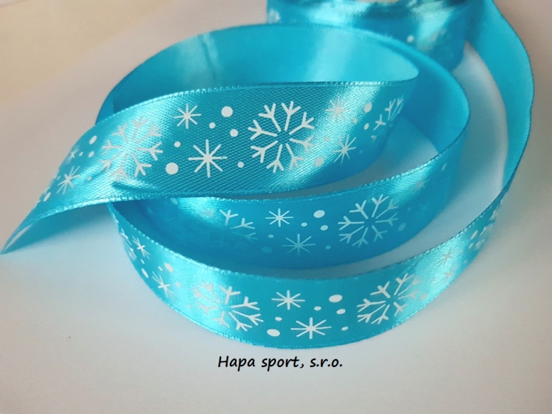 Vánoční stuha - saténová ( 25mm x 2m ) vločky světle modré 1+1ZDARMA